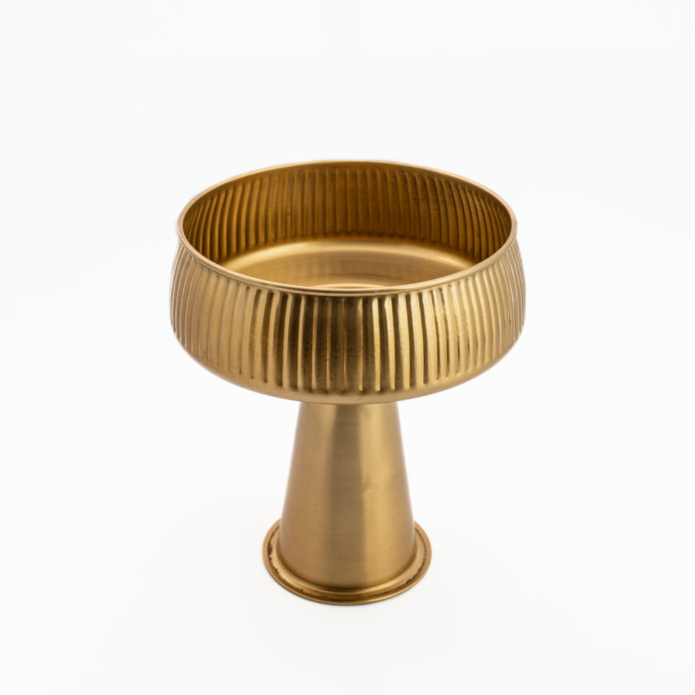 Crafted from durable metal that is powder coated and over-enameled, the urli is finished in a luxurious antique gold tone that offers superior anti-corrosion protection and long-lasting brilliance. The pedestal base with wooden accent adds height, stability, and visual balance, making it an elegant focal point for medium-sized spaces.